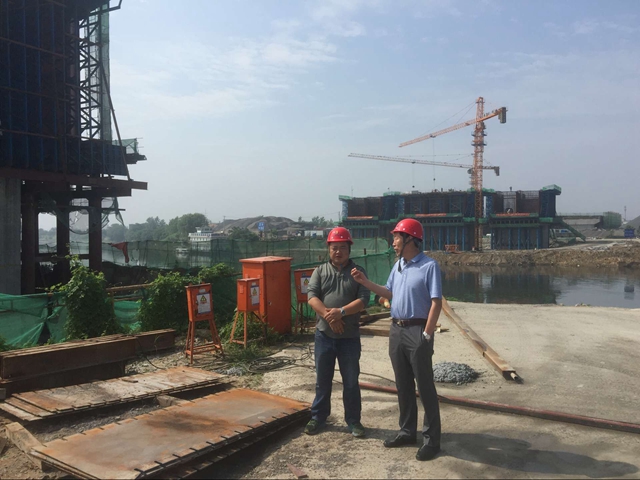 5月31日上午,安徽路港公司董事长李振标在项目部负责人的陪同下到安徽路港郎溪路高架项目部检查指导工作。