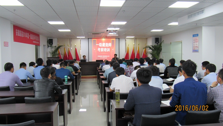 为满足公司生产经营需要,提升工程技术人员综合素质,6月2日,安徽路港公司举办2016年度一级建造师考前培训,来自公司生产、经营和管理等战线上的共80位同事参加了培训。在培训开班仪式上,公司董事长李振标亲临指导,并提出要求。