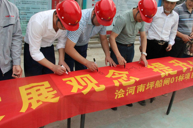 为全面提升项目安全管理层次,提高职工安全意识,6月7日上午,安徽路港浍河南坪船闸01标项目部组织开展“安全月”宣誓签名活动。