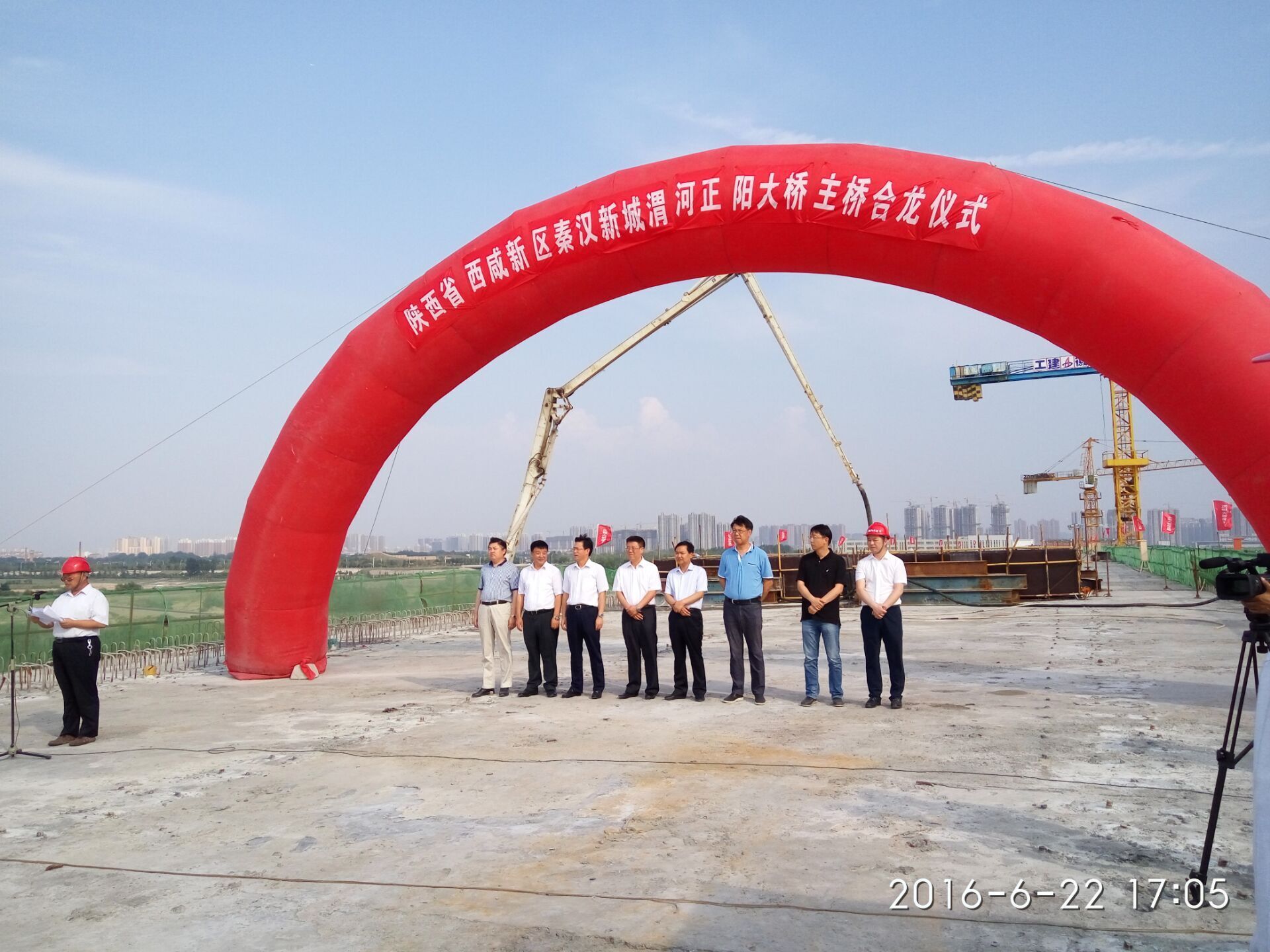 2016年6月22日下午,安徽水利西北公司承建的西咸新区秦汉新城渭河正阳大桥举行主桥合龙仪式。西咸新区管委会副主任兼秦汉新城管委会主任杨占文、咸阳市渭城区区委书记杨美乐、区长余天西、常务副区长李晓曦、秦汉新城管委会副主任许寿琨、杨占成、秦汉新城基建公司经理赵高飞、安徽水利西北公司经理傅宏林等出席了仪式,参建各单位、各部门近百人共同见证了这一激动人心的时刻。