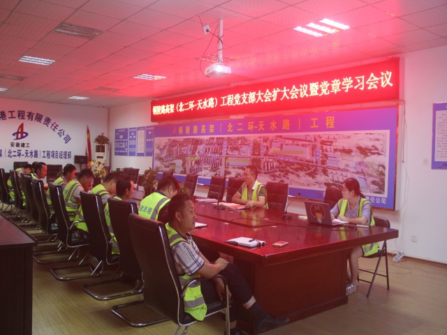 为贯彻落实集团党委及安徽路港公司党委关于“两学一做”学习教育有关要求,安徽路港铜陵路高架(北二环-天水路)工程项目党支部于6月22日下午召开会议,重点组织了对党章的集体学习,项目部在职党员、入党积极分子及部分群众代表参加了会议。
