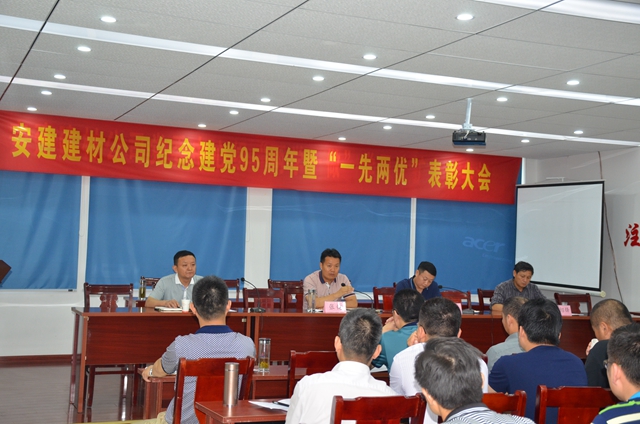 2016年6月28日上午,安建建材公司在安徽瑞特同大工业园一楼会议室召开纪念建党95周年暨“一先两优”表彰大会、党委中心组“两学一做”学习(扩大)会议。参加人员有:公司领导、子(分)公司领导班子、机关部门副职以上人员、公司全体党员以及受表彰的“一先两优”人员。会议由安建建材公司党委副书记胡运春主持。