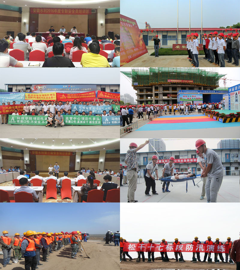 2016 年 6 月是全国第十五个“安全生产月”,主题是“强化安全发展观念,提升全民安全素质”,按照国家、行业主管部门和集团公司相关文件要求,安徽水利开展以“强化教育培训,坚守安全红线,推动安全发展”为主题的系列安全生产宣传教育活动。所属各单位以落实安全主体责任为重点,认真开展了以安全教育培训、隐患排查治理、应急预案编制与演练等为内容的系列活动。