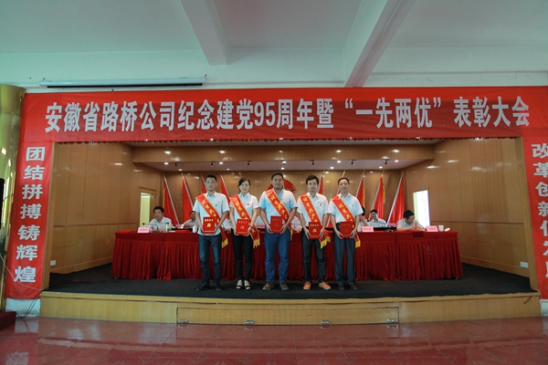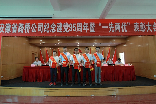 大会在雄壮的《国歌》声中拉开帷幕。安徽路桥公司党委委员、纪委书记林绪坤宣读了公司党委关于“一先两优”的表彰决定、团委关于表彰优秀团员青年的决定。授予宁千路面01标项目等3个党支部“先进党支部称号”,授予董宏德等28名同志“优秀共产党员”称号,授予朱凯等3名同志“优秀党务工作者称号,授予高健等5名同志“优秀团员青年”称号。杨芳、朱凯、高健分别代表受表彰的优秀共产党员、优秀党务工作者和优秀团员青年作先进事迹交流。