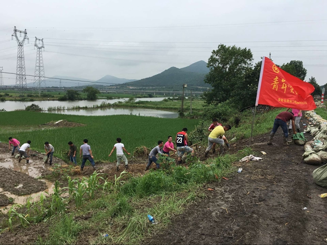 7月1日至5日,正在建设中的北沿江高速巢无段遭受持续降雨,项目沿线的桥梁、路基施工段落受暴雨影响明显。安徽路港北沿江04标项目及时成立了抗洪防汛“青年突击队”,向每一名队员发出了“做路港优秀青年,打赢防汛攻坚战”的号召,并对防汛工作任务进行详细安排和部署。队员们弘扬“召之即来,来之能战,战之能胜”的突击队精神,以保护老百姓及项目部的生命、财产为己任,不怕脏不怕累,建立雨季值班制度,责任到人,分片包保,定期检查,对水塘大坝进行泄洪,对地方农田水系进行疏通,对路基边坡进行抢护,对人员出行进行指挥、帮助等。截止到7月5日中午,该项目部施工段落及附近村庄无一例险情发生,安全状况可控。7月7日上午,突击队队员们接到了巢湖市银屏镇政府的指令,要求协助他们进行大坝加固工作。队员们立刻动身赶往现场,跟着村干部和村民一起加固大坝护坡,扛木杆、装沙袋、运沙袋,哪里缺人手他就到哪里。大家纷纷表示,将随时待命,继续坚守奋战在抗洪抢险一线。