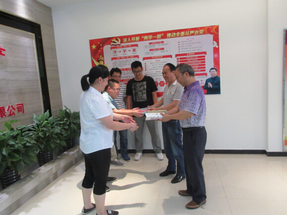 7月26日下午,安建地产有限公司党总支书记、总经理杨斌与党群工作部相关同志一起,冒着高温驱车前往合肥同兴置业发展有限公司,为一线员工送去防暑降温物品和图书,标志着安建地产党总支开展的向基层一线员工“送清凉”、“送图书”活动正式启动。