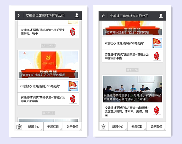 为引导广大党员群众学懂、吃透“两学一做”学习教育精神,深化认识,学有所用,切实推动公司各项基础管理工作不断发展,2016年7月起,安建建材公司党委结合工作实际,在微信公众平台创新开展“微党课”教育活动,集中推送《党章知识选粹》、安建建材“两优”先进事迹等内容,通过小载体烘托大主题,增强党课的吸引力和感染力。