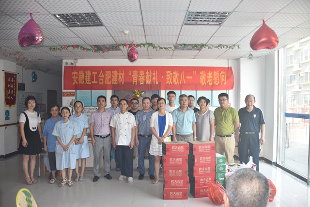 为弘扬中华民族拥军、尊老的优良传统,在“八一”建军节来临之际,合肥建材团支部在党支部、工会带领下一行16人走进合肥市包河区青山老年公寓开展敬老慰问活动,为老兵和老人们送去节日问候。
