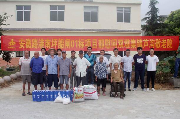 为弘扬中华民族尊老爱幼的传统美德,安徽路港南坪船闸项目部于8月5日组织项目部全体党员和青年志愿者到濉溪县双堆集镇芦沟敬老院开展“关爱老人送清凉”活动。