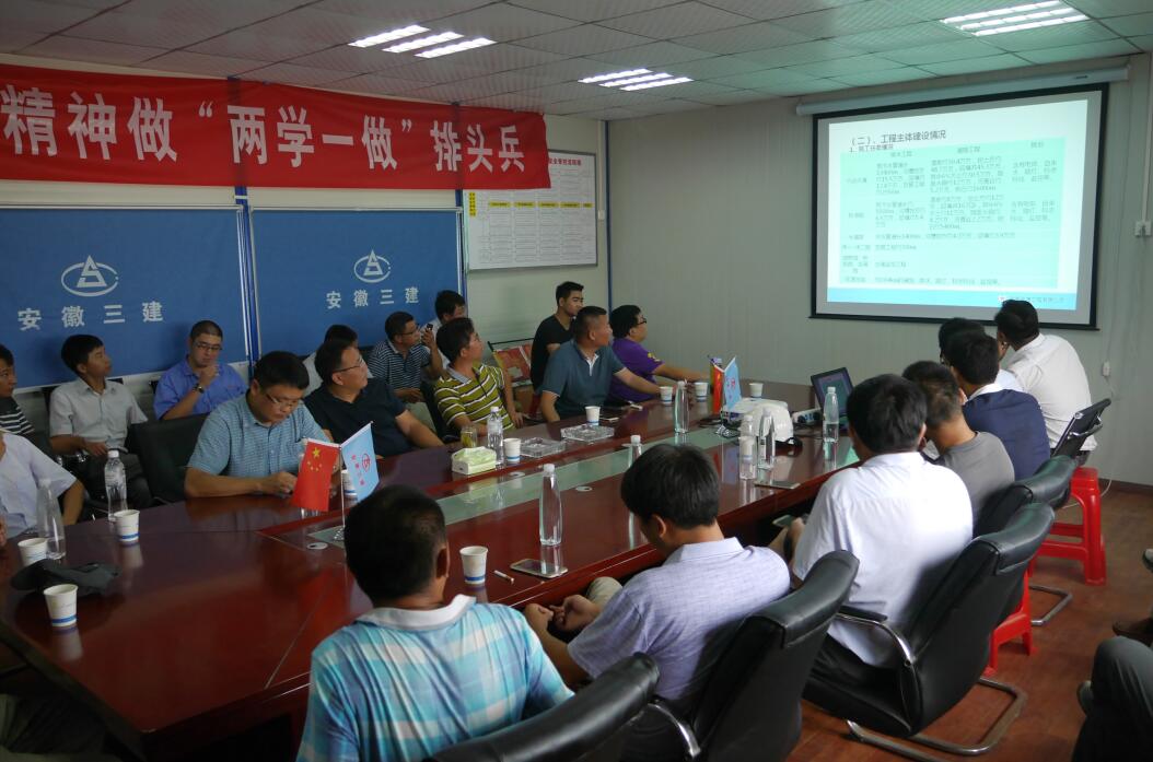 在随后召开的座谈会上,听取项目经理以PPT形式关于工程概况、项目管理亮点特色等相关内容汇报后,李茂茂局长作了总结性发言,他对该项目的精细化施工管理等予以了充分肯定,要求经开区所有市政参建单位向安徽三建学习,学习三建先进的管理方法,学习三建求真务实的态度。期间,各参建单位分别就现场观摩做了表态发言。