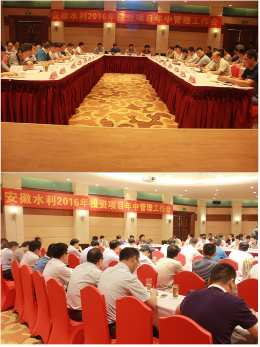 2016年8月19日上午8点,安徽水利2016年投资项目年中管理工作会议在蚌召开。公司领导,机关职能部门负责人,有投资项目的分(子)公司经理、分管经营副经理、财务负责人及投资发展部全体成员参加了会议。会议由股份公司总法律顾问李素平主持。