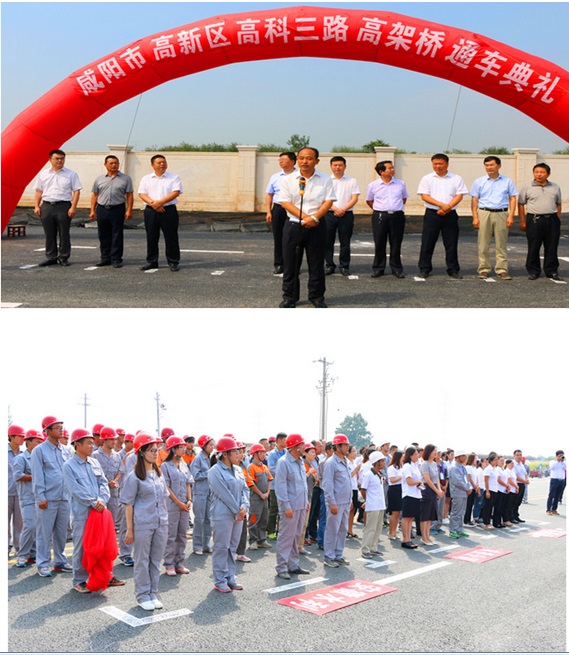 8月30日上午,由安徽水利西北公司承建的咸阳市高新区高科三路高架桥正式建成通车。高新区管委会主任景雪峰致辞并宣布通车令,咸阳市城投集团公司党委书记、董事长李立战及相关领导出席通车仪式,西北公司经理傅宏林代表安徽水利发表讲话。