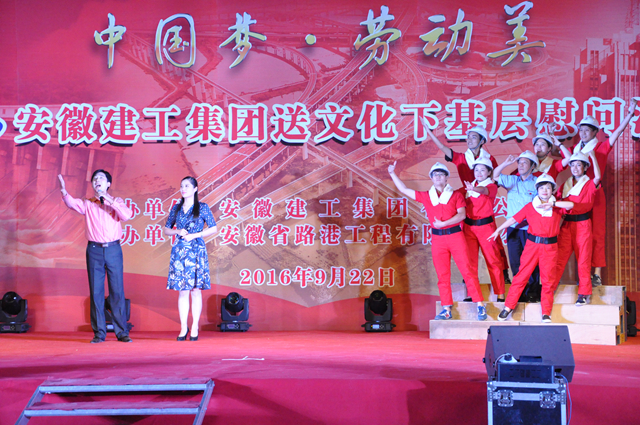 9月22日晚,安徽建工集团送文化下基层慰问巡演在安徽路港公司沙颍河航道整治工程项目部举行,将集团公司工会对一线干部职工的亲切慰问和深情关怀,用文艺演出的方式送到职工身边,安徽路港沙颍河项目部、安徽路桥太和三桥项目部和安徽二建太和房建和市政PPP指挥部的职工共200多人观看了演出。