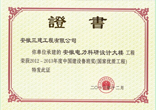 工程概况:工程位于合肥市经济开发区繁华大道北侧,设计单位是中国建筑技术集团有限公司设计,由安徽省电力工程监理有限责任公司监理。是一座设计先进、施工精细、节能环保的科研设计大楼。施工中彰显绿色、科技的施工理念。建筑面积23750平方米,地下一层,地上11层,建筑高度53.7米。外墙主要为花岗岩石材幕墙、玻璃幕墙、铝板幕墙。2006年9月1日开工,2009年4月30日竣工。分别荣获“省级安全文明工地”、“安徽省建筑业新技术应用示范工程”、“黄山杯”。并于2012年度荣获中国建设工程“鲁班奖”。 | ||||||||