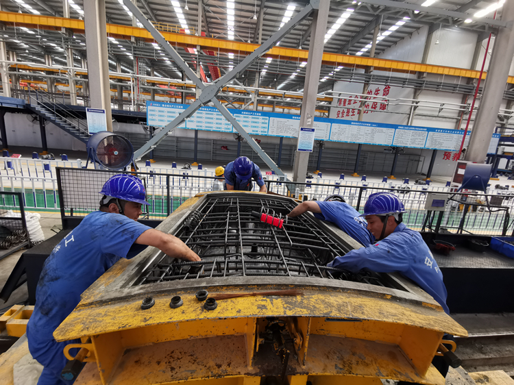 “智能管片打前锋,钢筋班组做后盾,构件生产在培新,管理人员齐上阵。”国庆长假,为保证节后大生产,安徽建工北城工业公司车间依旧机器轰鸣,人头攒动。所有人员目标清晰,岗位明确,一号、二号构件生产线积极培养新人,钢筋班组保障后勤,抓紧焊接料笼为生产做准备,五号智能管片生产线全员上阵,捆扎、振捣、平整,生产不间断,管理人员采取部门值班、跟班作业,确保国庆假日正常生产。