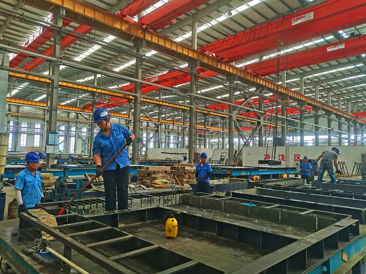 在第一批“国家装配式产业示范基地”的安徽建工建筑工业公司,广大职工利用节日加班制作模具,为节后工作做准备。