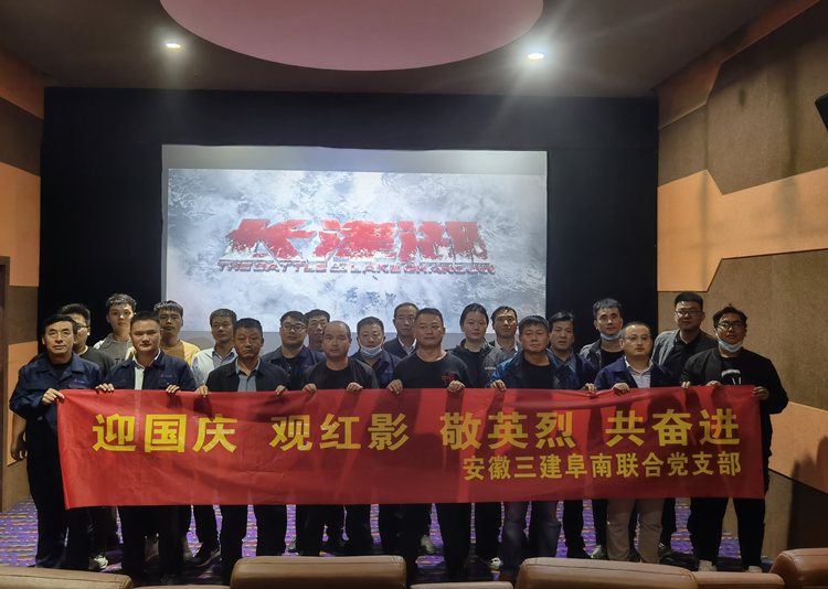 四公司阜南联合党支部于10月6日晚,组织全体党员及所有管理人员20余人观看红色电影《长津湖》。