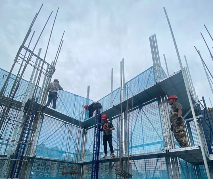 十一公司新沂中心项目搭设外架,为后续主体结构施工构筑“安全网”。