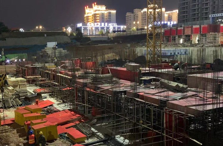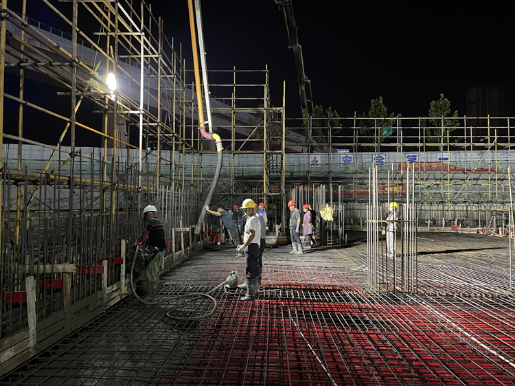蚌埠公司淮南拓基鼎元世家项目假日期间合理排班,组织夜间浇筑混凝土。