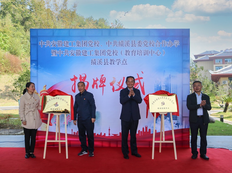 10月23日上午,安徽建工集团党校、绩溪县委党校合作建设教育培训基地暨安徽建工集团党校(教育培训中心)绩溪教学点揭牌仪式在中共绩溪县委党校举行。控股公司党委副书记、工会主席牛曙东,绩溪县委副书记、县委党校校长何峻,股份公司党委副书记、集团工会副主席徐文联,绩溪县委党校常务副校长胡亦萍共同为集团党校(教育培训中心)绩溪教学点揭牌。集团党委工作部部长王诗旵主持揭牌仪式。