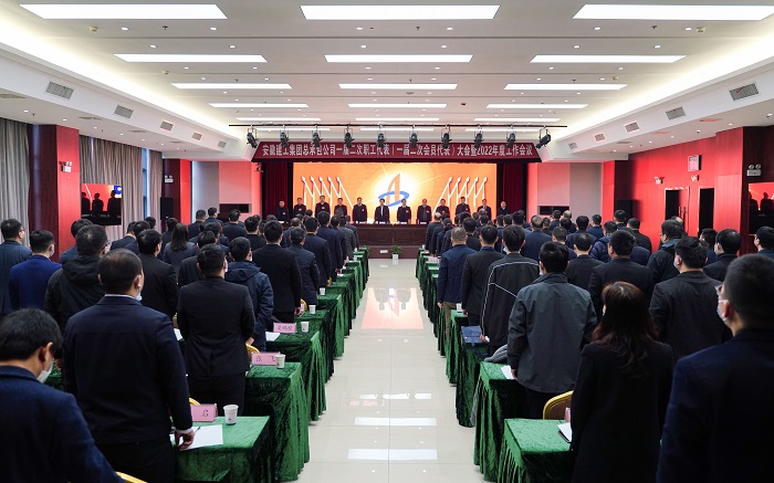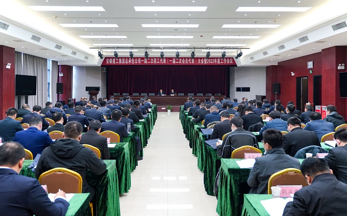 人勤春来早,奋进正当时!壬寅虎年春节假期刚过,2月12日至13日周末,安建总承包一届二次职工代表(一届二次会员代表)大会暨2022年度工作会议在安建大厦胜利召开,学习传达集团二届二次职代会暨2022年工作会议精神,回顾总结2021年工作,谋划部署2022年工作。建工股份党委副书记、总经理、董事李有贵出席并讲话,集团党委工作部部长王诗旵率考核组到会开展公司领导班子及成员2021年度综合考核以及“一报告两评议”民主测评工作。公司领导张冲、王成民、高立久、陈道兵、徐友修、谷建伟、李登祥、王庆松、副督察员孙有勇、总助阮明、余新友参会,九个政企合资公司政府股东方派驻的十多名经理层人员作为特邀代表参会。大会在奏唱《安徽建工之歌》中开幕。