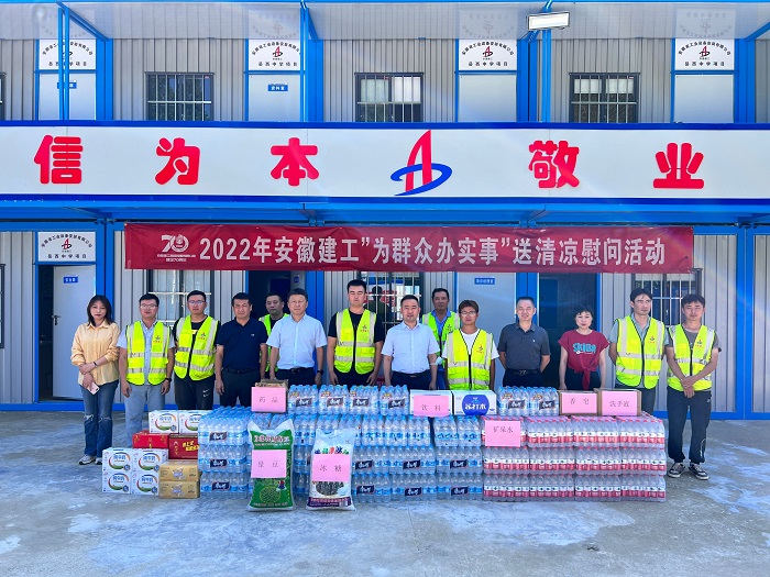 7月15日,建工股份党委委员、副总经理黄代赴安徽安装岳西中学建设项目宣贯建工控股第一次党代会精神暨开展“为群众办实事”送清凉慰问活动,安徽安装公司党委书记、董事长胡六中参加慰问。