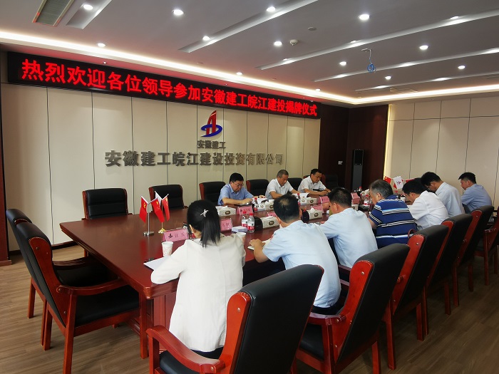 在揭牌仪式前的座谈会上,听取了皖江建投四月份成立以来工作进展、下步计划、发展目标等工作汇报。张冲对各股东方大力支持安徽建工和皖江建投在芜湖发展表示感谢,希望皖江建投按照“十四五”发展规划,立足新起点、开启新征程,深入推进政企战略合作,创新模式加快发展,大干快上打造精品工程,以新业绩助力地方经济社会发展。李锐锋对皖江建投取得阶段成绩给予肯定,对下步开拓市场壮大规模、加强企业科学管理、党建融合业务发展等方面提出要求,表示将加大支持协调力度,共同助力皖江建投加快发展。