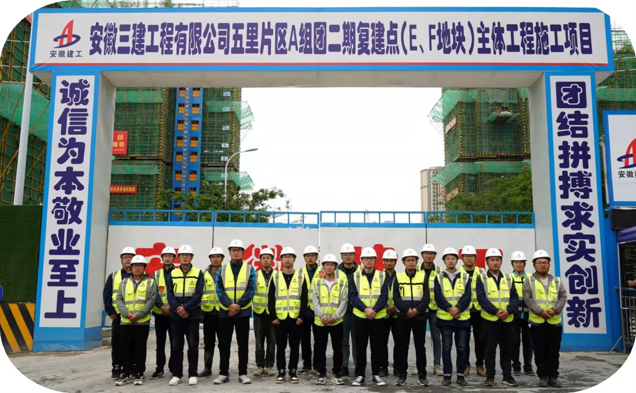 安徽三建五里片区A组团二期复建点(E、F地块)主体施工项目总建筑面积16.2万㎡,工程总造价4.51亿元,地上部分包括3栋社区配套用房,9栋住宅,共计952套住宅。