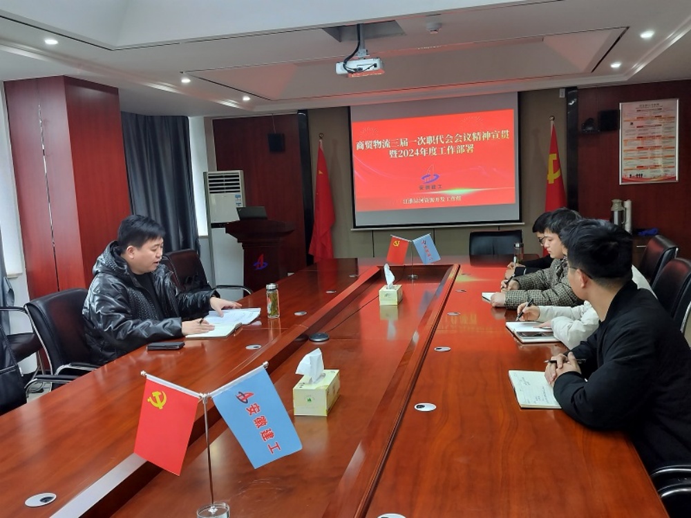 2月26日,江淮运河资源开发工作组召开建工商贸物流三届一次职代会会议精神宣贯暨2024年度工作部署动员会,全体工作组成员参加会议。会议传达学习了公司三届一次职代会会议精神。同时,根据2024年度发展目标责任书,分析梳理了全年各阶段重点工作任务,安排部署了下一阶段重点项目推进工作。会议强调,全组成员要严格对照各项目标任务,加强联动协同机制,把握时间节点,群策群力,以“开工即决战、起步即冲刺”的精气神,确保项目尽快落地见效。