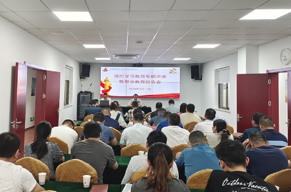 5月17日下午,建工一建党委举办党纪学习教育专题讲座暨警示教育报告会。安庆市中级人民法院政治部副主任、机关党委专职副书记、机关纪委书记钱泽民应邀授课,建工一建党委委员、纪委书记陈楠主持会议。