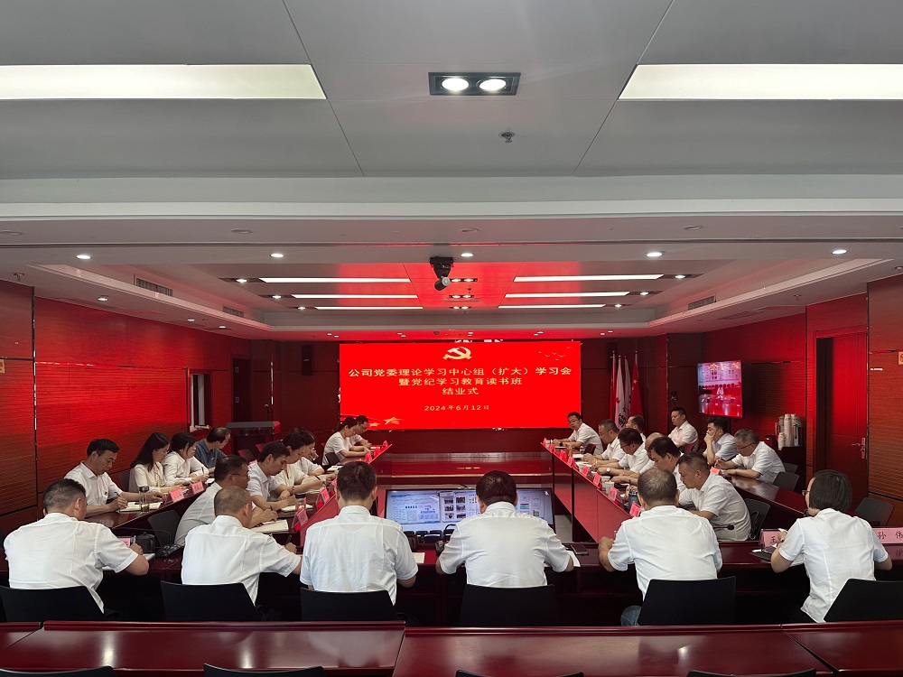 6月12日,公司党委召开理论学习中心组(扩大)学习会暨党纪学习教育读书班结业式,公司党委书记、董事长任杰主持会议并讲话,公司党委理论中心组成员、机关各部门负责人及所属各单位党政负责人参加。