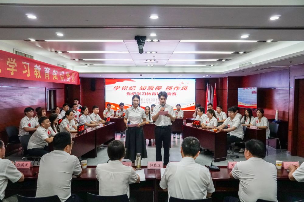 为深入贯彻落实党中央关于在全党开展党纪学习教育的工作部署,推动党纪学习教育走深走实,教育和引导广大党员干部切实将《中国共产党纪律处分条例》学深学透、入脑入心。6月21日下午,公司党委联合纪委成功举办“学党纪 知敬畏 强作风”党纪学习教育知识竞赛。公司党委副书记、工会主席干戈,公司党委委员、纪委书记王学梅出席活动。