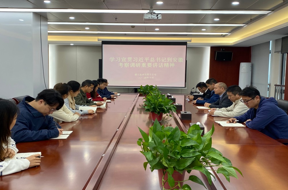 10月31日,第五公司召开专题会议,传达学习习近平总书记考察安徽重要讲话精神。会议要求,一要提高政治站位,坚定拥护“两个确立”、坚决做到“两个维护”,迅速掀起学习宣贯热潮,把握丰富内涵、吃透精髓要义。二是深入贯彻落实习近平总书记关于抓好第四季度经济工作指示精神,全力以赴抢抓市场经营,加快在建项目建设,以高质高效完成全年各项目标任务检验学习贯彻成效。
