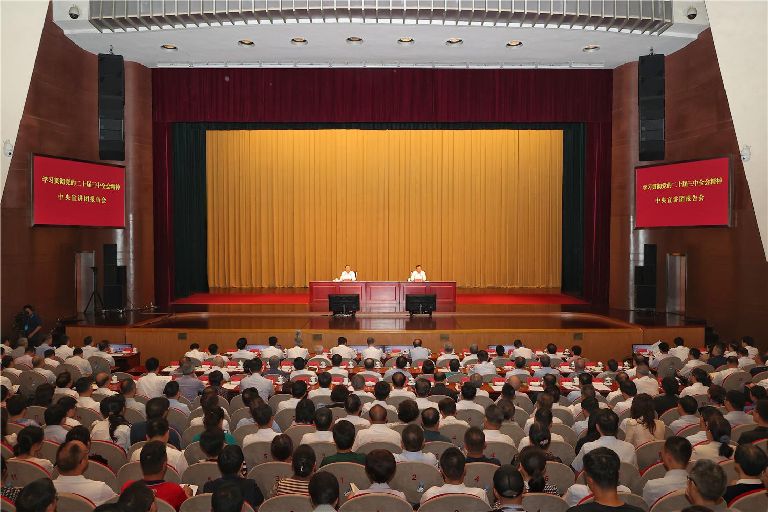 七月三十日上午,学习贯彻党的二十届三中全会精神中央宣讲团报告会在合肥举行。中央宣讲团成员、中央社会工作部部长吴汉圣作宣讲报告。省委书记梁言顺主持报告会。本报记者 杨 竹 许 昊 摄