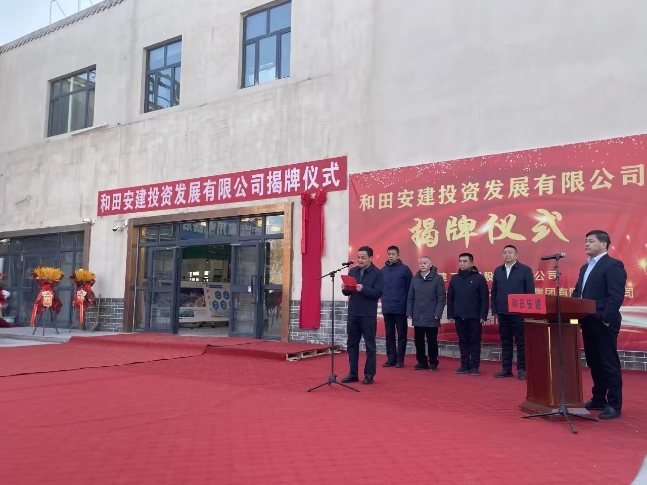 12月29日上午,和田安建投资发展有限公司在和田地区皮山县举行揭牌仪式。和田地委副书记、安徽省援疆指挥部临时党委书记、指挥长张庚家,和田地区行署副专员杨关勇共同揭牌。安徽建工集团股份有限公司党委委员、副总经理、新疆分公司总经理张冲,皮山县县委书记李志峰,和田水务发展集团董事长申俊峰分别致辞。和田安建公司董事长沈荣建主持揭牌仪式。