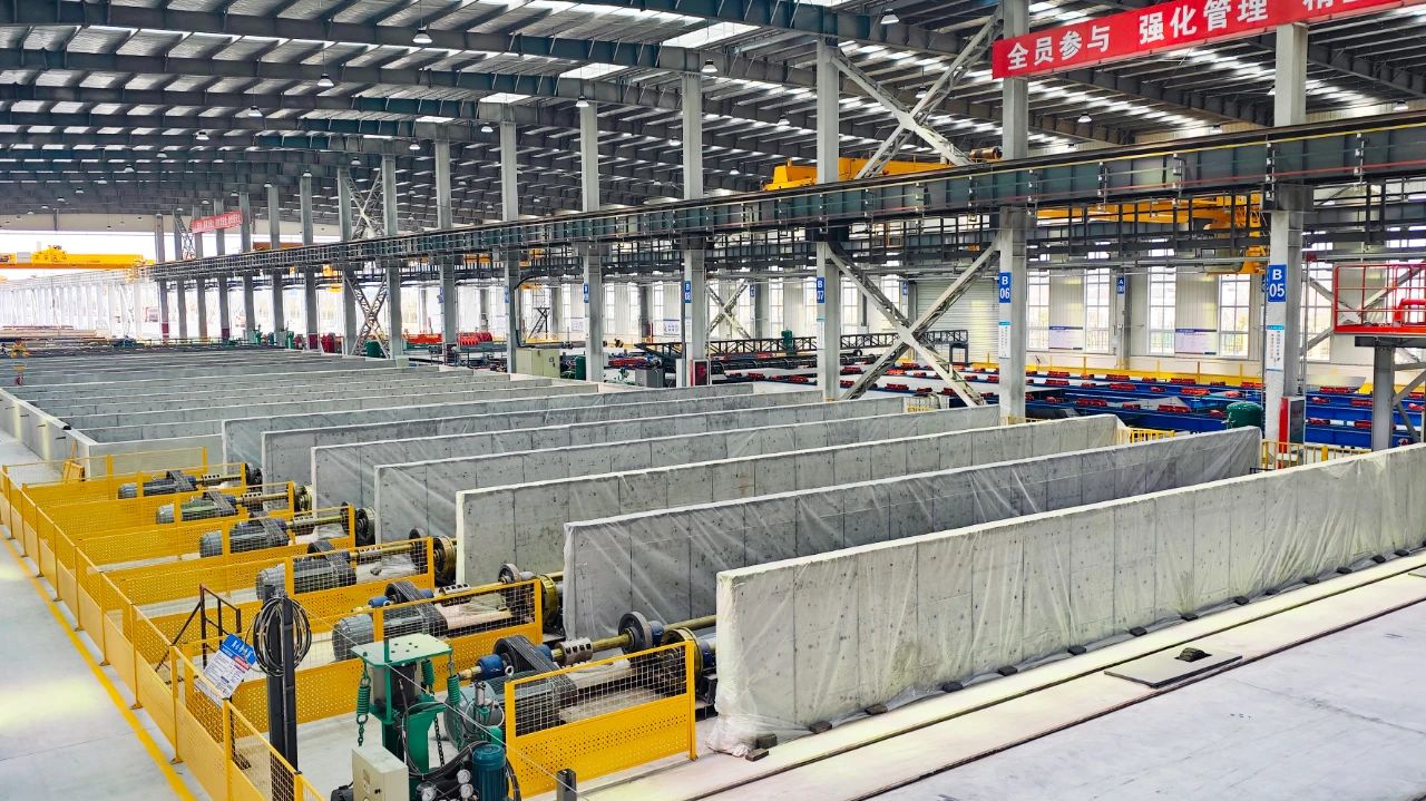 二期管桩厂占地90亩,新建1.25万平方米智能化管桩厂房、1.4万平方米露天堆场及3100平方米配套设施,配备国内领先的PHC管桩全自动生产线。大型自动化搅拌系统、离心成型设备、蒸汽养护窑等核心装备的联动作业,可实现高强度管桩规模化生产,产品被广泛应用于桥梁、房建等工程领域。同时,精准温控养护技术、智能张拉工艺的运用,以及全流程质量追溯体系的搭建,使得该生产线生产的管桩耐久性与承载力都达到了行业领先水平。