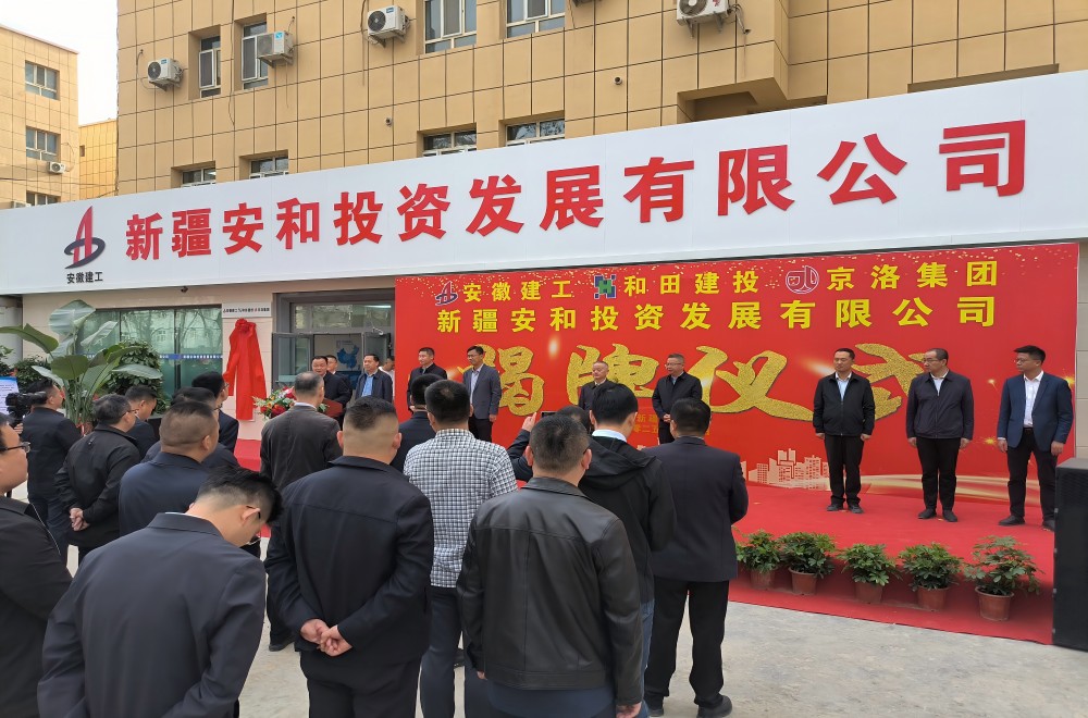 新疆安和投资发展有限公司是根据集团与和田地区战略合作协议,由安徽建工集团股份有限公司控股,与和田建设投资(集团)有限责任公司、新疆京洛集团有限责任公司合资组建。揭牌仪式后,大家还参观了公司办公场所和企业文化展板。