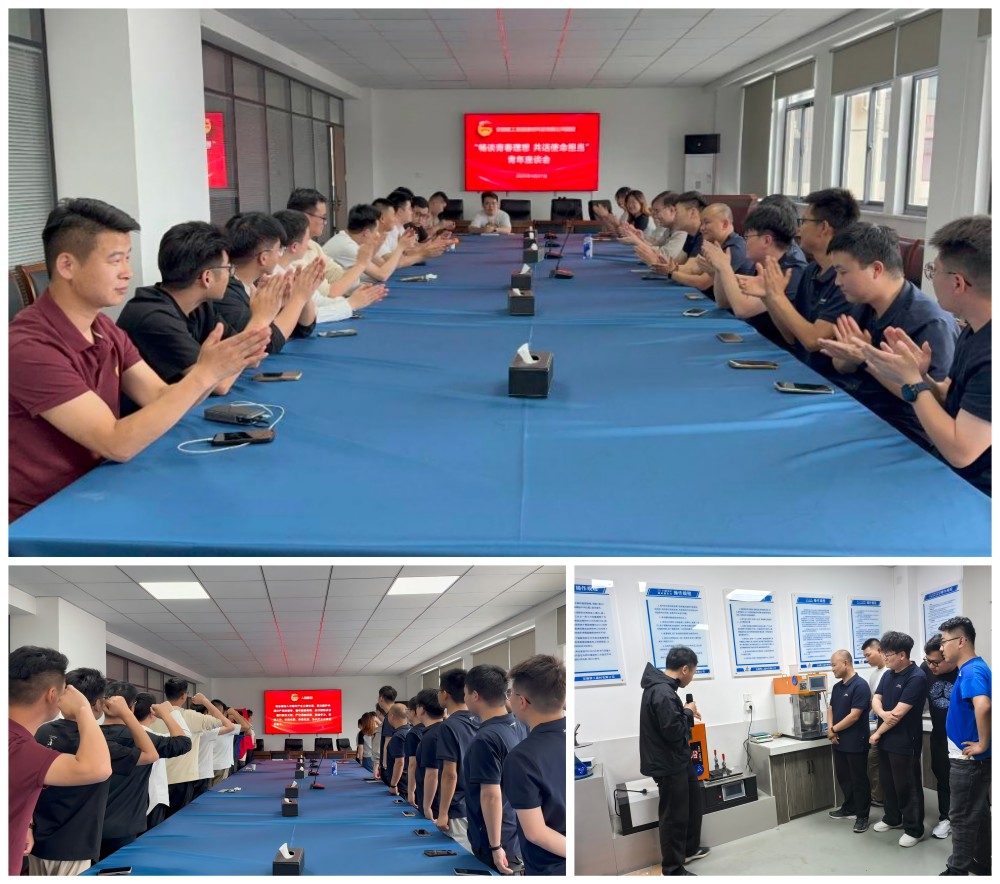 畅谈青春理想,共话使命担当。活动第二站来到安徽瑞特(擎工建材),团员青年们集体观看五四主题微电影《青春》,重温入团誓词,以“畅谈青春理想,共话使命担当”为主题开展座谈交流,最后参观了试验室。