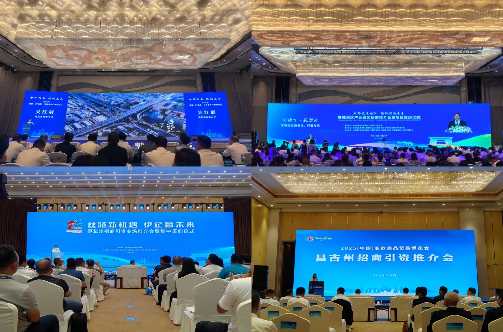 6月26日,以“共商亚欧合作 共享丝路繁荣”为主题的2025(中国)亚欧商品贸易博览会在新疆国际会展中心开馆。作为大会组成部分,6月25日至27日,安徽建工集团应邀参加阿克苏地区、伊犁哈萨克自治州、昌吉回族自治州、塔城地区的专场推介会。建工股份党委委员、副总经理、新疆分公司总经理张冲代表集团参会,介绍集团改革历程和近年来转型发展成效,分别和阿克苏地委书记吴红展、昌吉州党委常委、常务副州长陆晶、伊犁州党委常委、伊宁市委书记李伟等地州领导、相关县市和单位负责人交流推进合作。