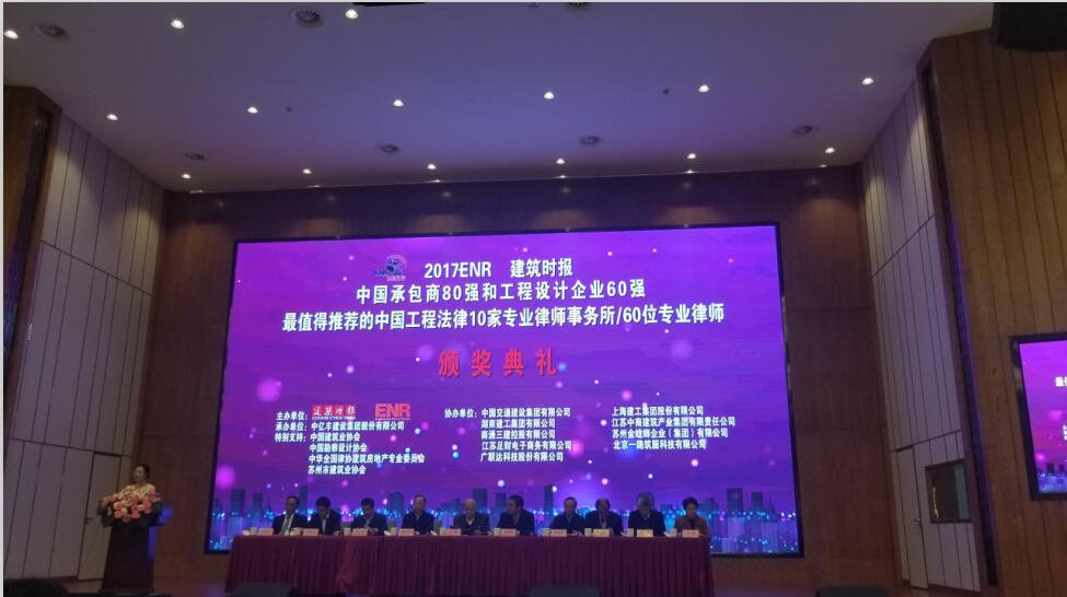 The Awards Ceremony for “Top 80 Chinese Contractors” and “Top 60 Chinese Engineering Design Firms" was held recently in Suzhou, Jiangsu Province recently, this was a grand event co-hosted by two media authoritative - the Magazine "Engineering News Record" (ENR ) from the United States and the Magazine “Construction Times” from China.