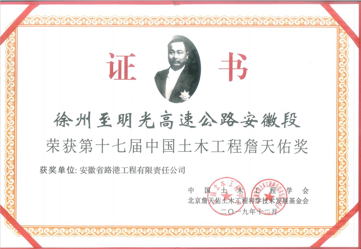 Good news from China Civil Engineering Society the other day, said that the newly completed motorway Xuzhou – Mingguang, by ACEG Road and Port Engineering Co., Ltd. - one of ACEG`s subsidiaries, professionalized contractor for road and port engineering and construction, won the 17th national “Jeme Tianyou Award” for civil engineering in China and it is the third time the company has won the award.