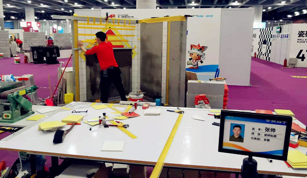 Four ACEG contestants joined Anhui provincial delegation in qualification trials for the World Vocational Skills Competition in four events: masonry, tile fixing, featured masonry and interior decoration design.