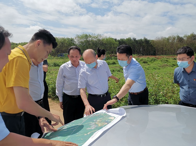At the meeting, the two sides have had in-depth exchanges and discussions on aspects as universal and comprehensive improvement of lands, tourism, health care, real estate development, sand and stone mines, new building materials, prefabricated buildings, construction projects and foreign trade. After the meeting, Chairman Zhao and his delegation, accompanied by relevant personnel, went to Xinying Mangrove Wetland Park, the comprehensive rehabilitation resettlement site of the Century-old Rubber Garden and other projects for field investigation and research.